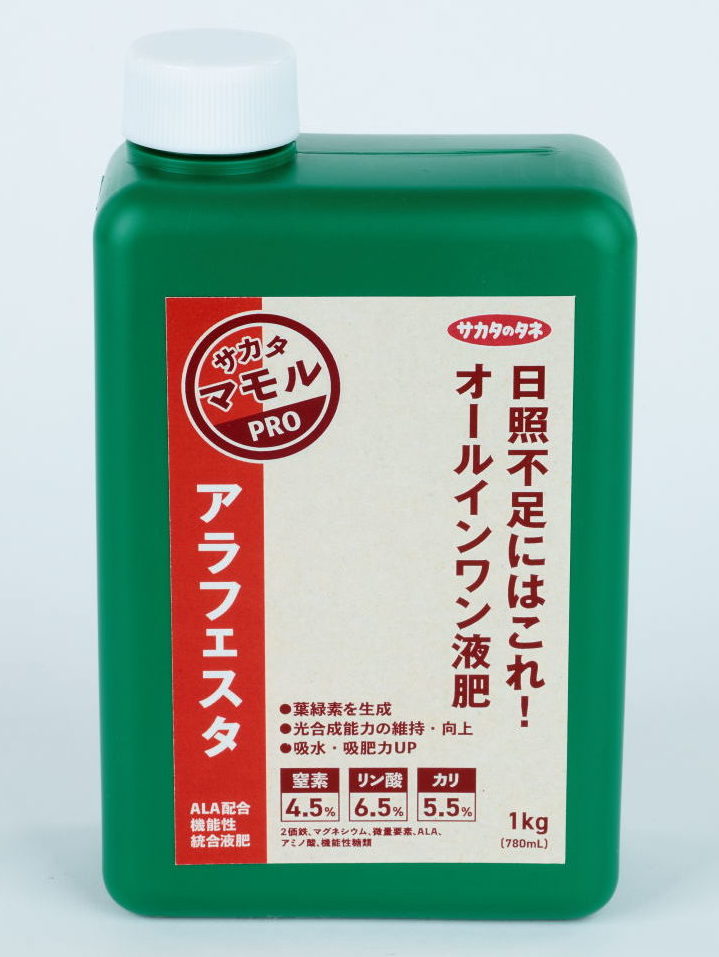 N:4.5% P:6.5% K:5.5%、2価鉄、マグネシウム、微量要素、ALA、アミノ酸